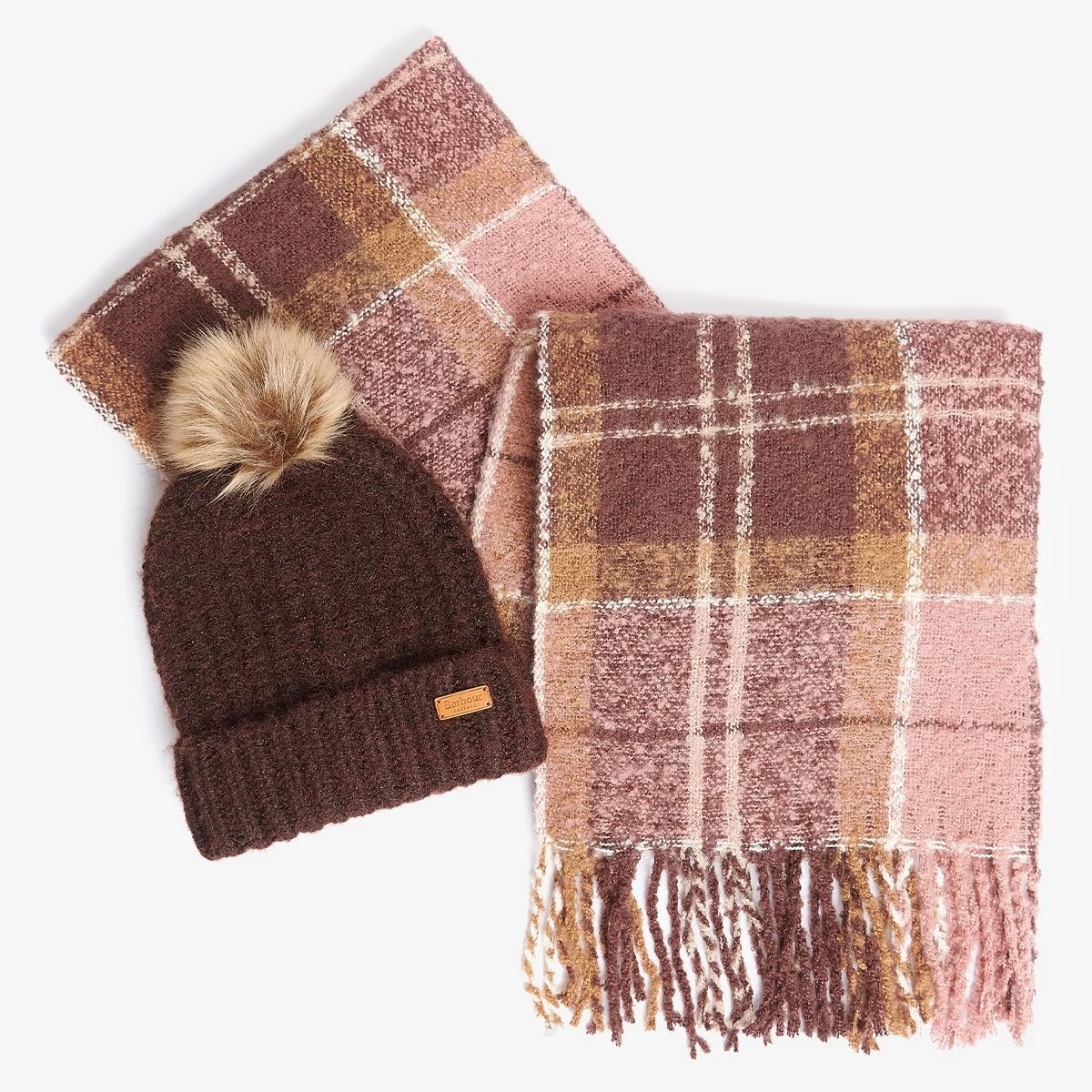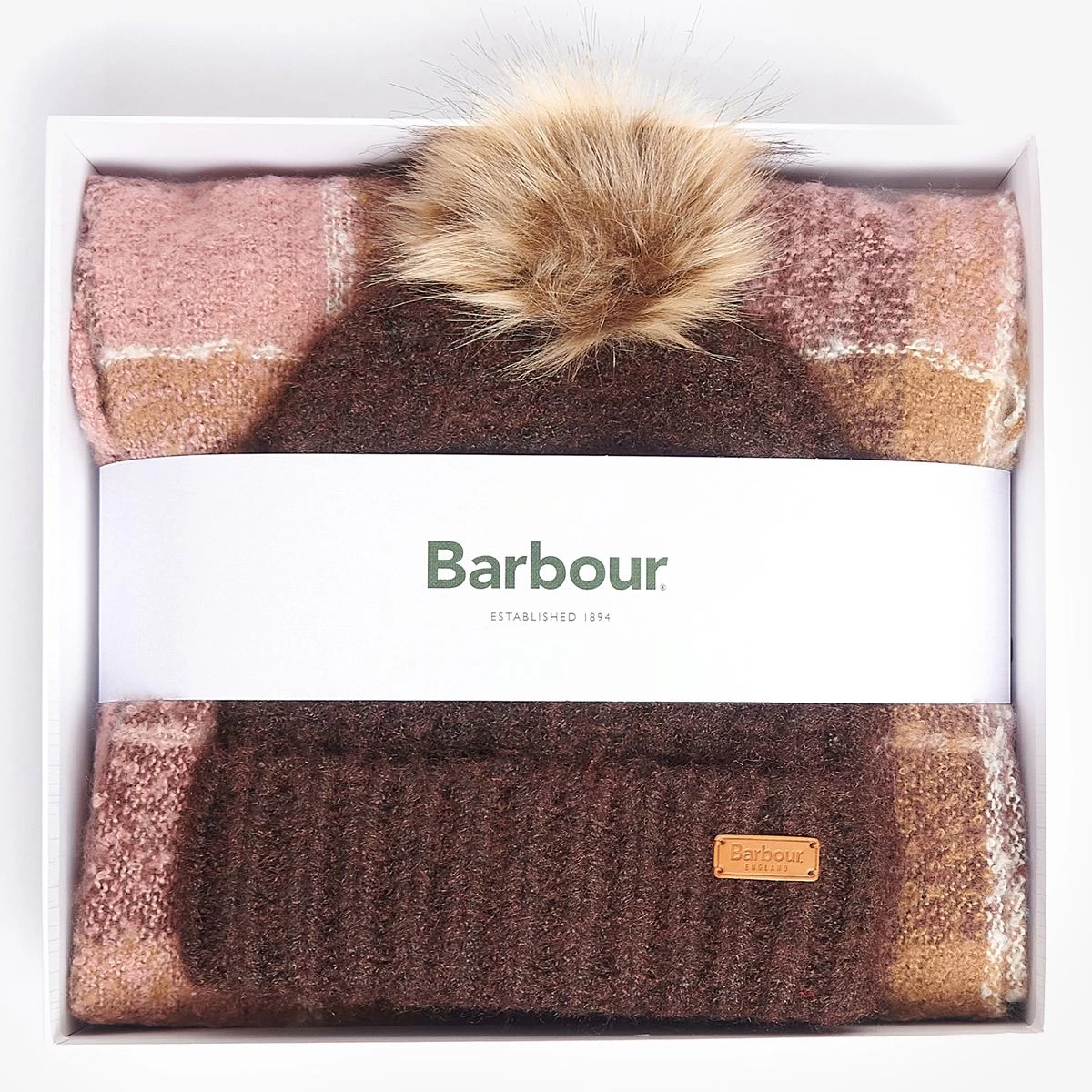 Barbour Women’s Beanie and Scarf Gift Set – Chocolate