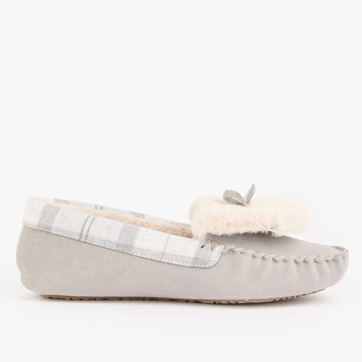 Barbour Women’s Darcie Slipper – Grey Suede/White/Grey Tartan
