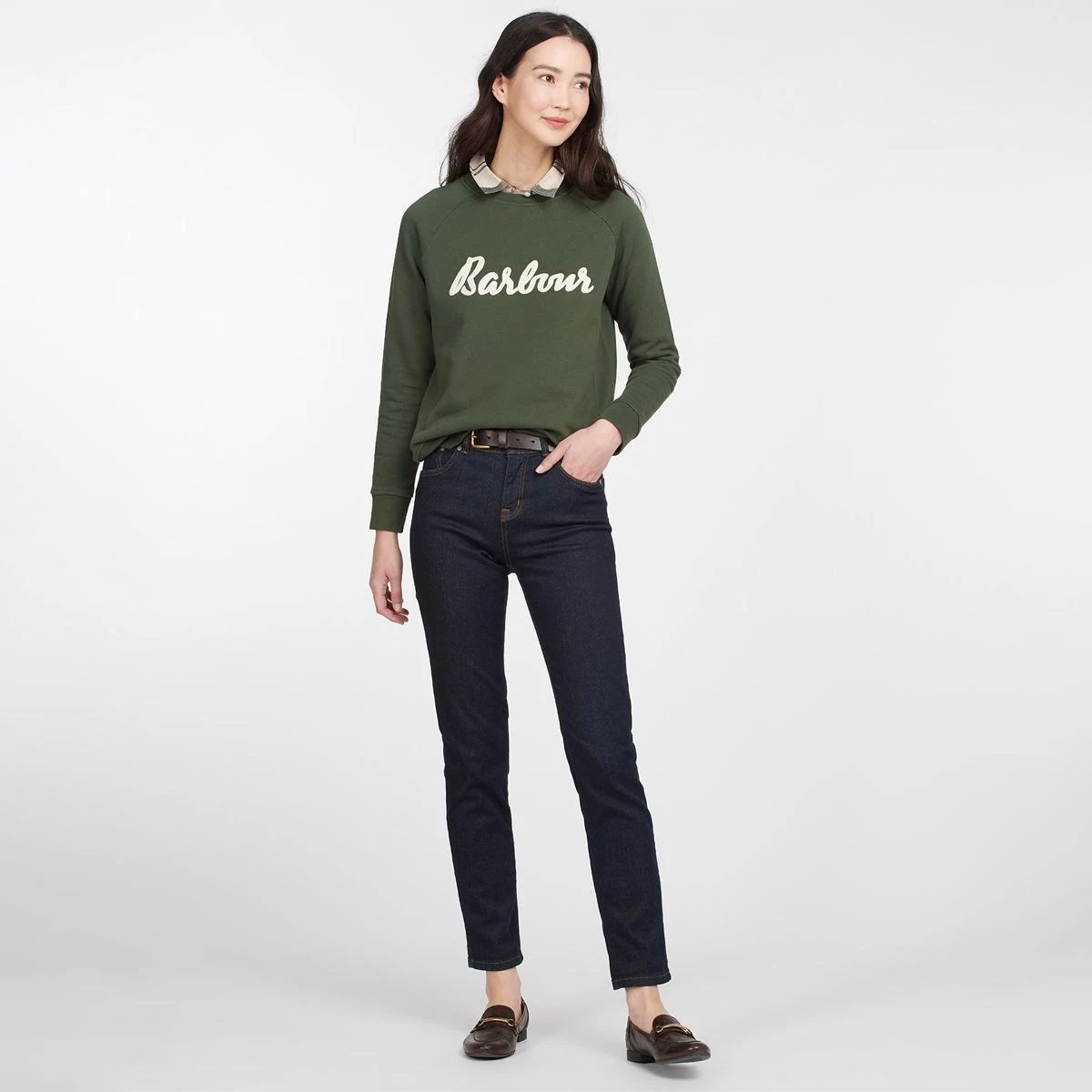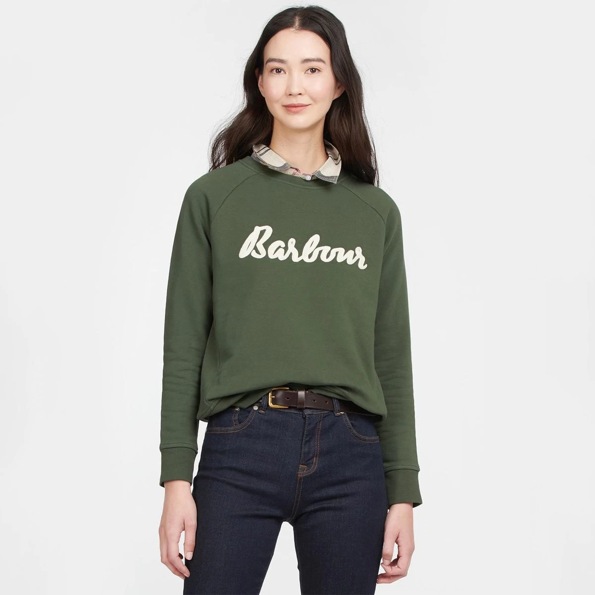 This Barbour Otterburn sweater comes in the perfect shade of olive and will add a pop of colour to any outfit! Make your outfit look fun, chic, and comfortable! This is an easy-to-piece sweater that offers a flattering shape and is made of 100% cotton making it super comfortable. The Otterburn also features a bold logo Barbour print to the front, which will allow you to show off your favourite brand. The classic crew neck sweatshirt is the perfect layering piece, whether over a ditsy summer dress or your favourite pair of jeans, making any outfit extremely chic!
