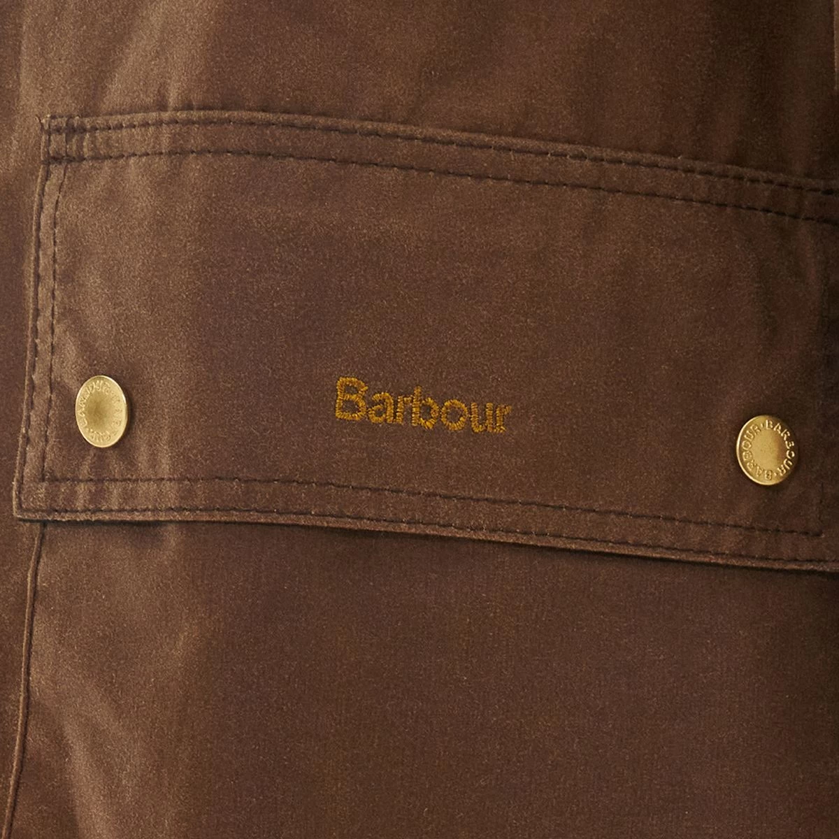 As a mark of authenticity and quality, the Barbour branding is elegantly displayed on the left pocket, adding a refined finishing touch to this exceptional jacket.