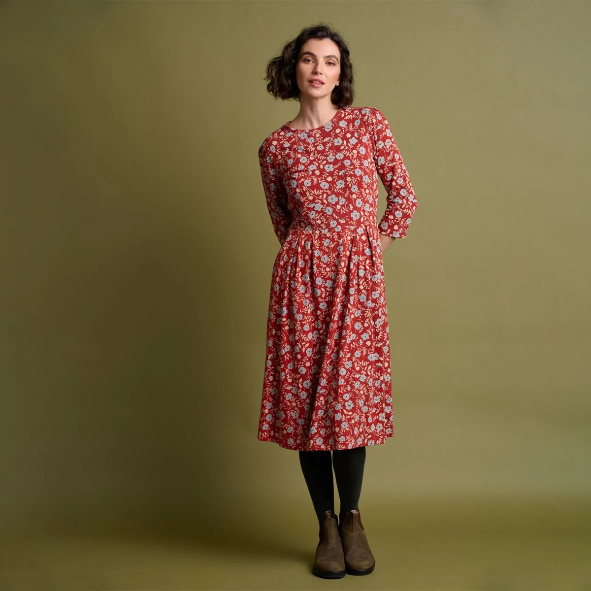 The Brakeburn Women’s Poppy Midi Dress is the perfect addition to your autumn wardrobe. Crafted from a cotton blend fabric with a touch of stretch, this dress offers comfort and style in one beautiful package.