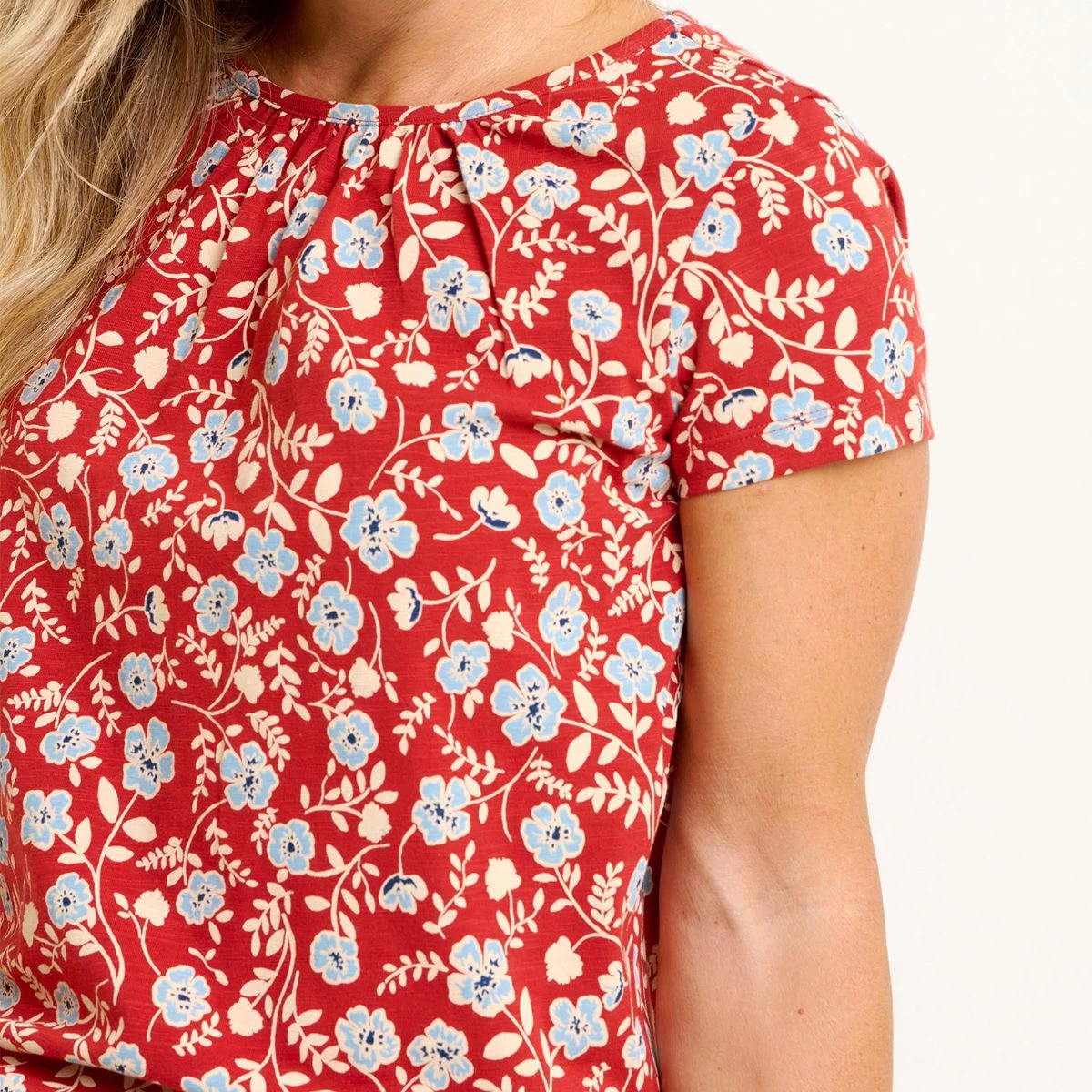 - Relaxed fit with gathered round neck