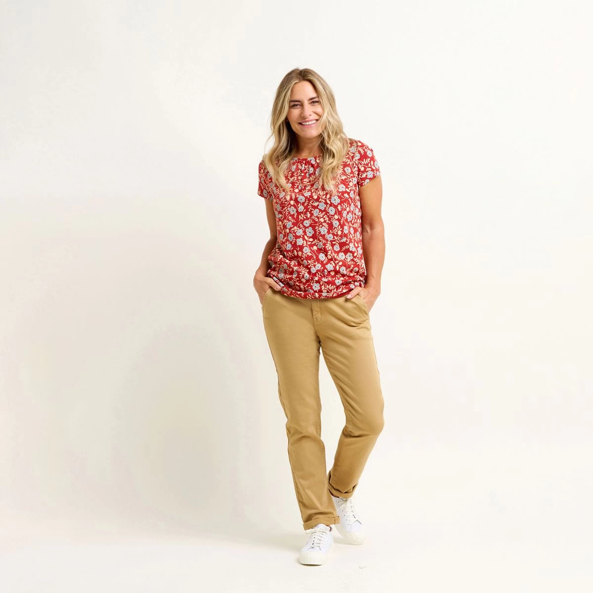 The Brakeburn Women’s Poppy Short Sleeve Tee is your ticket to a blissful journey through vibrant summer poppy fields. This enchanting t-shirt effortlessly captures the essence of relaxation with its relaxed fit, round neck with gathered detail, and short sleeves. Get ready to embrace a laid-back vibe without compromising on style.