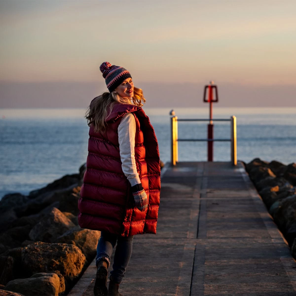 With the added convenience of side pockets, you can keep your essentials close at hand without compromising on style. The rich burgundy colour adds a touch of warmth and elegance to your outfit, making it the perfect choice for the cooler months.