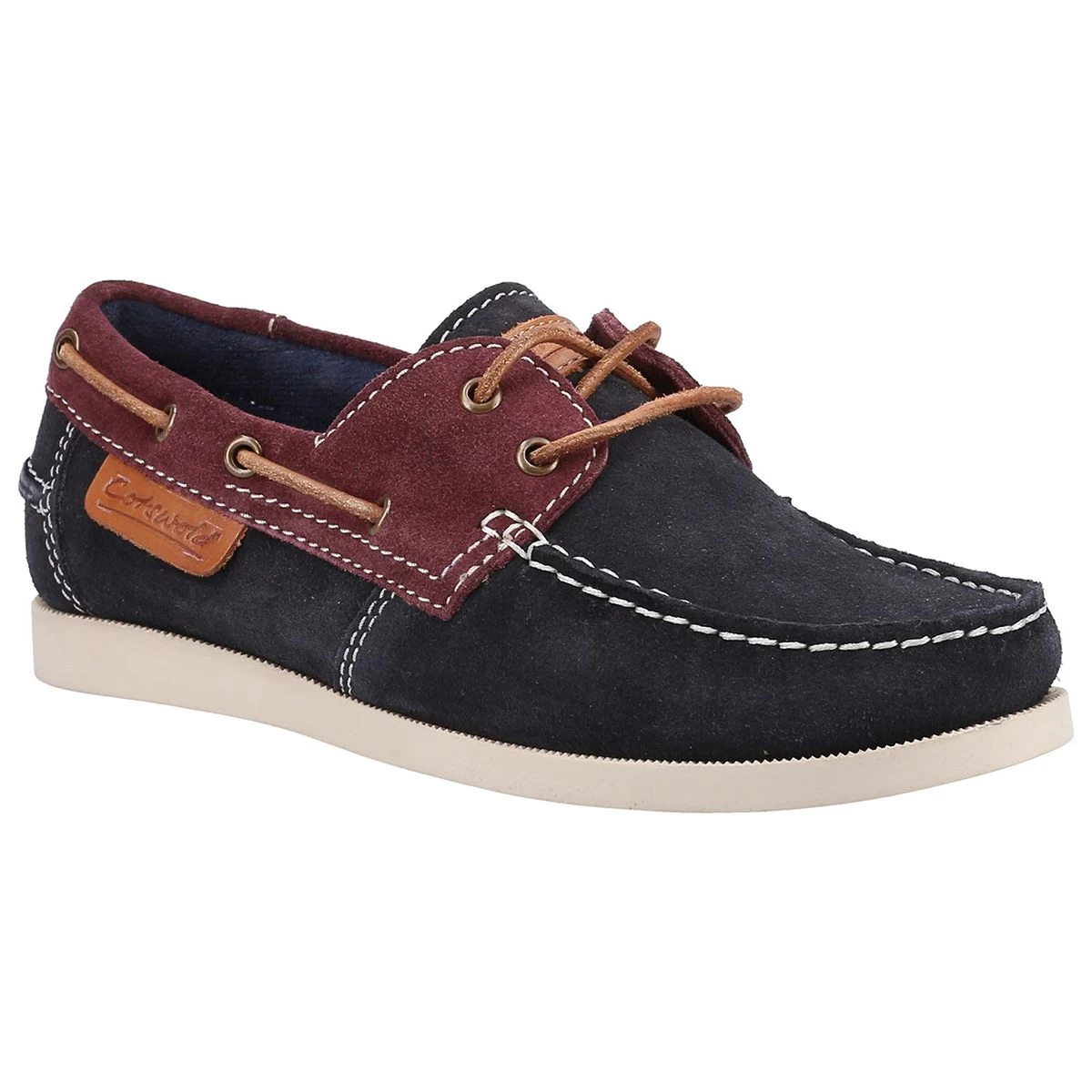 Chic and stylish, these Idbury Boat Shoes by Cotswold will complement just about any summer day outfit. Made with classic suede leather in a combination of navy and rich burgundy and finished with white stitch detailing, these traditionally styled boat shoes will keep you cool and comfortable whilst still looking smart. They feature a comfort-fit two-lacing system for a great fit, and memory foam footbeds will keep your feet cushioned with every step.