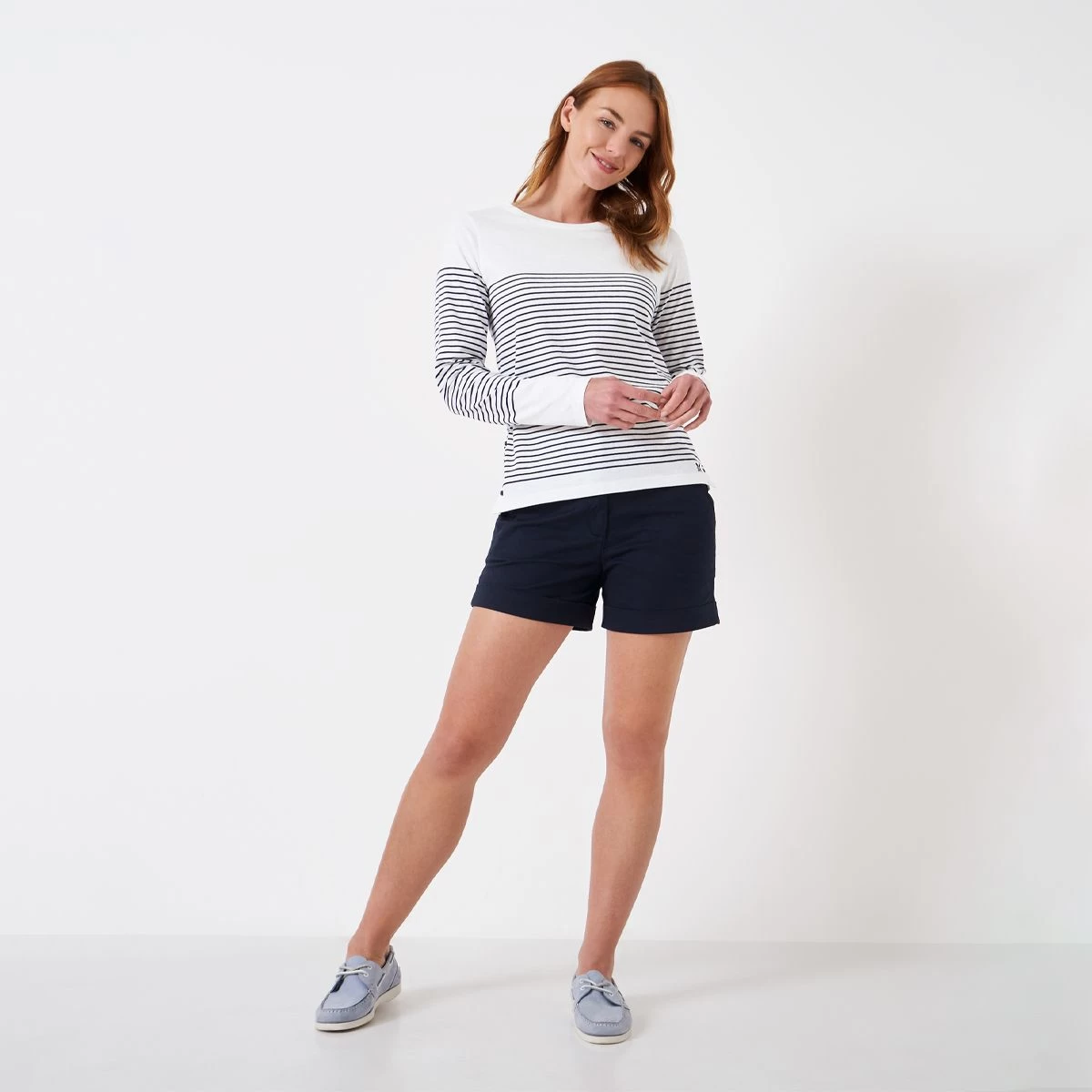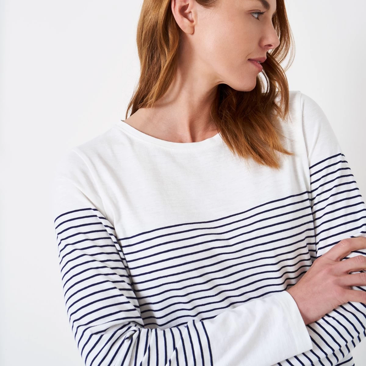 Crew Clothing Women’s Cassandra Side Button Breton Top – White/Navy