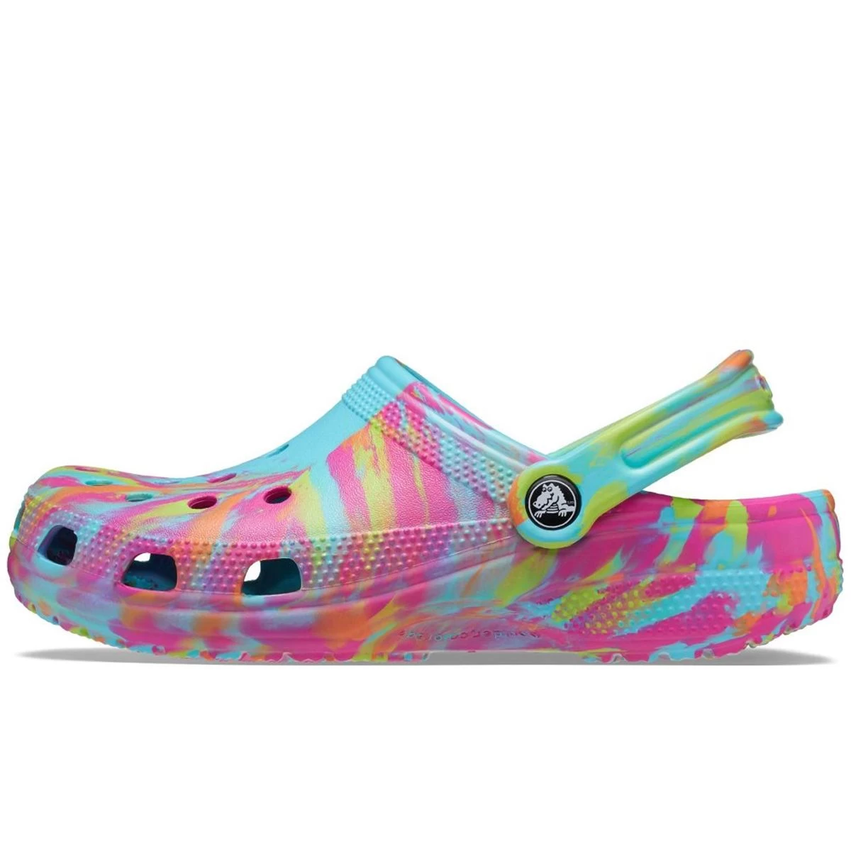 Whether you prefer a securely fastened shoe or like to opt for a more roomy and casual fit, the adjustable heel strap pivots forward allowing you to dial between a simple slip-on design or one in which your foot is kept firmly in place by the heel strap. Finished in dazzling marbled colour the practical Classic Clogs can be worn for all occasions whilst complementing any outfit.