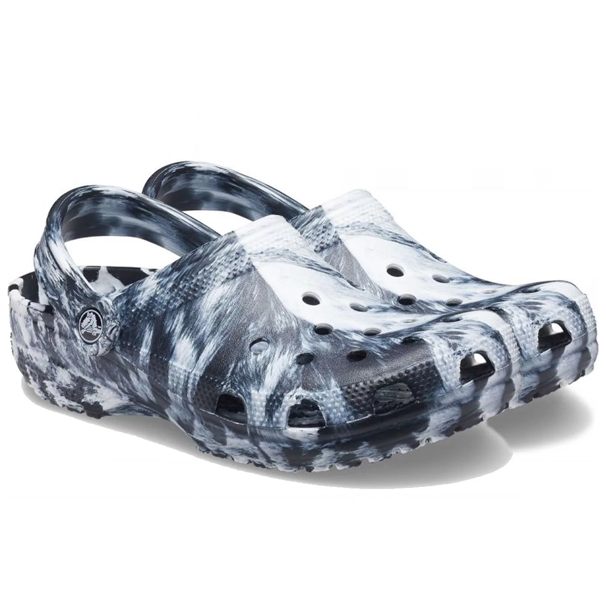 Crocs Unisex Classic Marbled Clogs – White/Black