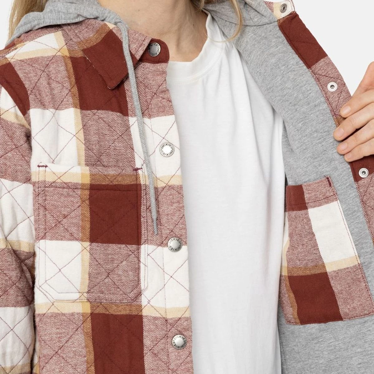Dickies Women’s Hooded Shirt Jacket – Brick