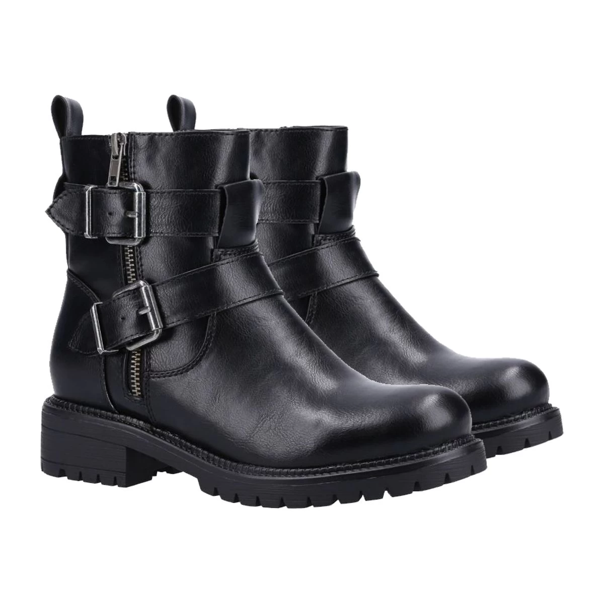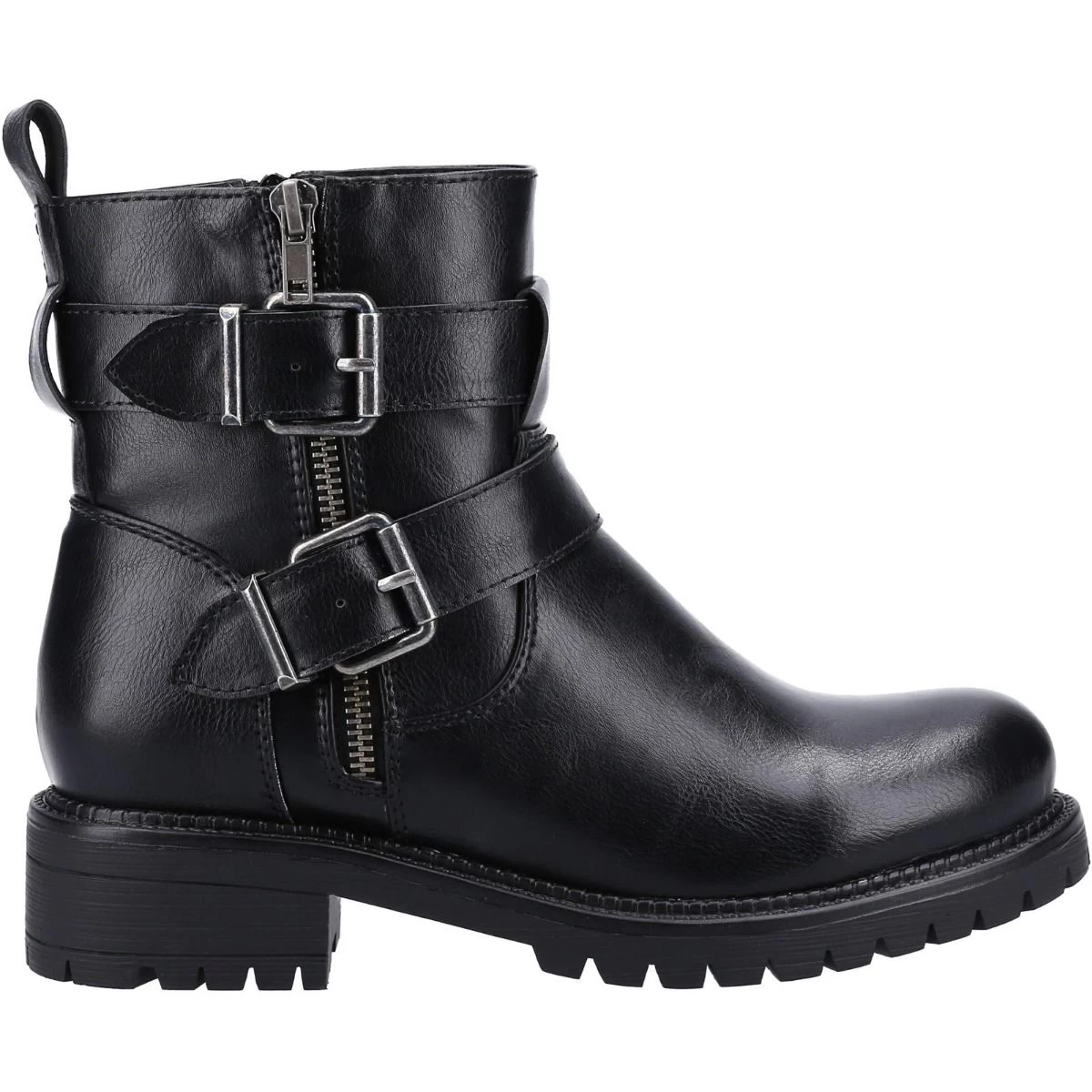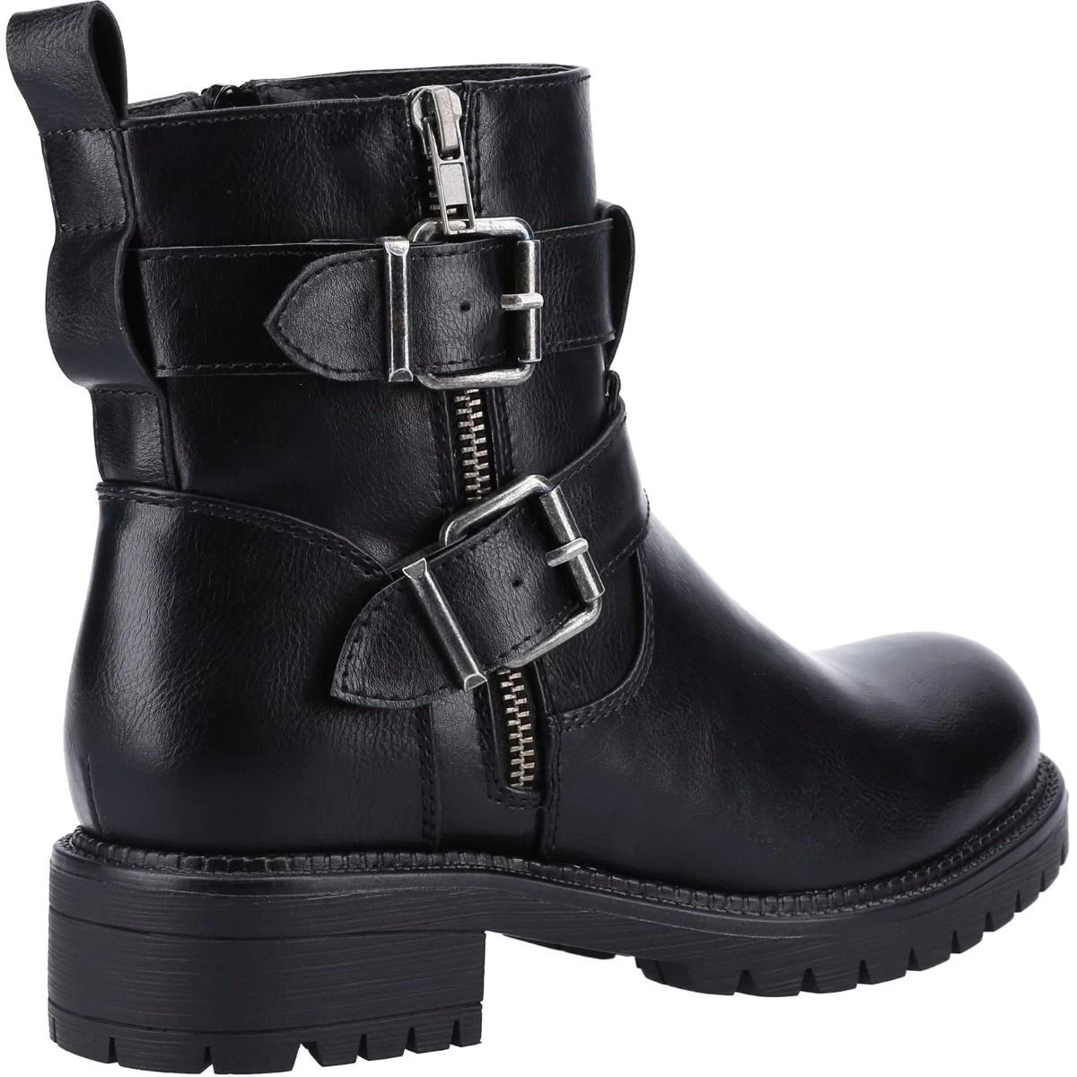 Add a bit of edge to your daily attire with the Divaz Women’s Sarah vegan biker boots! The Divaz Women’s Sarah Short Boot in black has subtle detailing that gives flare to a traditionally styled biker boot. The boots offer a ruched detail, a Bulky strap, daring zippers, and a chunky block heel. These trendy boots are not only stylish but are extremely comfortable ankle boots that will definitely be your favourite pair of shoes!