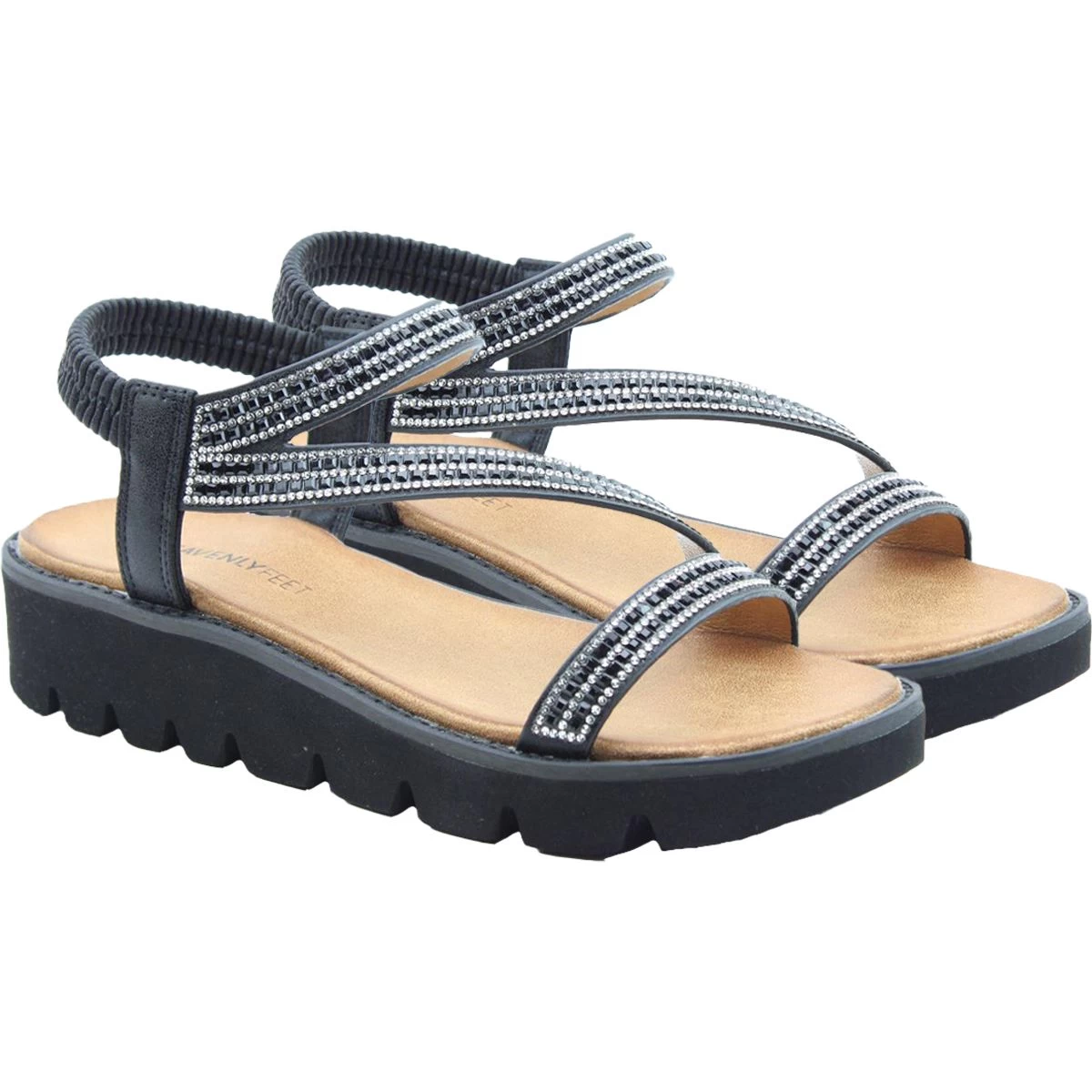 The ultimate staple summer sandal that offers style, comfort and support in equal measure. The Fresco Sandal from Heavenly Feet combines a thick gripped sole for ultimate support, with a padded insole for ultra comfort. The upper straps combined with the classic slingback strap around the back of the ankle provide the perfect support to keep feet in place without too much movement, whilst the silver and black detailing adds an element of glamour to an otherwise subtle, understated sandal – perfect for everyday wear throughout the summer.