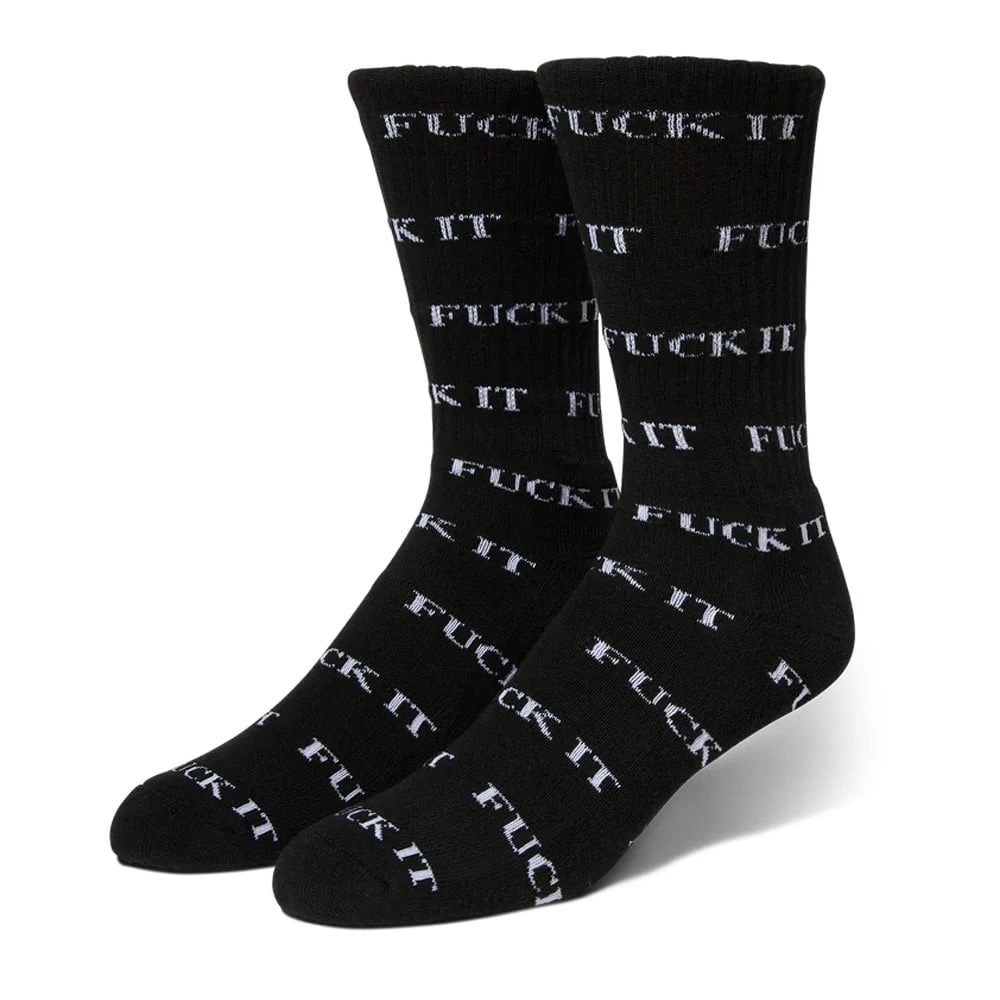The Fuck It Sock features HUF’s signature ‘Fuck It’ slogan in an all-over print on a solid colour body. A reinforced heel and toe offer extra durability, while a cushioned footbed adds comfort and support. Downhill from here.