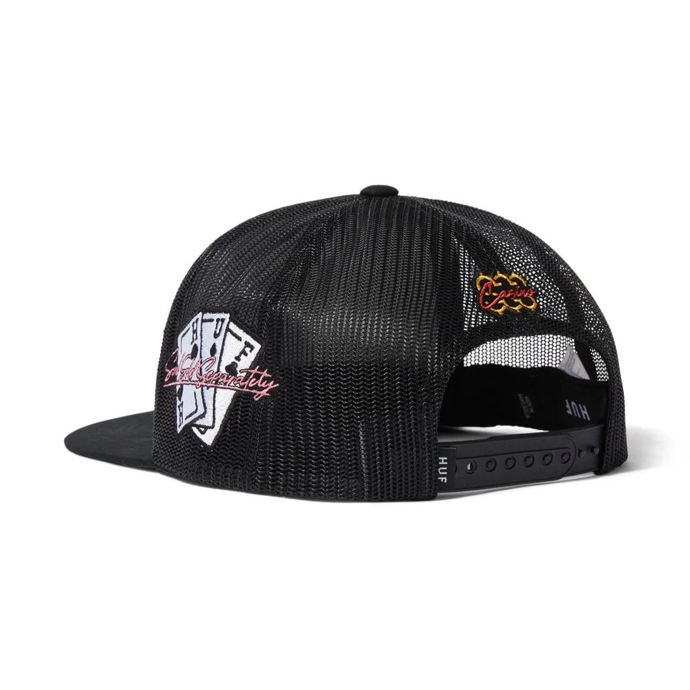 HUF x Freddie Gibbs mixes Las Vegas glitz and casino icons with surreal graphics and cameos from Big Boss Rabbit and HUF’s Green Buddy. Straight from the strip and inspired by Sin City’s golden era, classic resort-wear pieces get a glow-up with couture-inspired patterns, iced-out graphics, and after dark details.