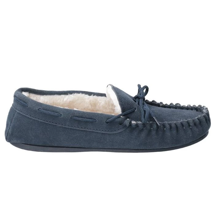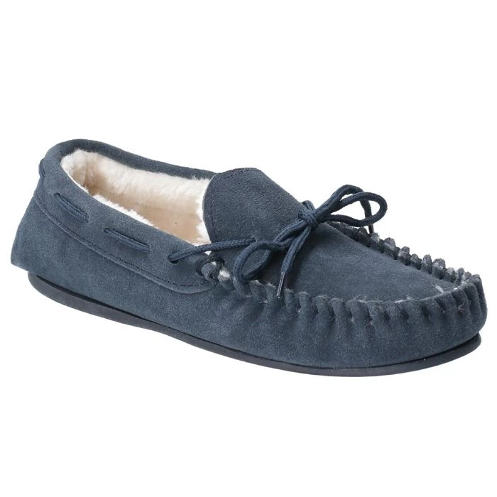 Enjoy every step with these ultra-comfortable Allie slippers by Hush Puppies. These stylish suede slippers feature a memory foam sock and faux fur lining these shoes are guaranteed to keep your feet warm this winter. The flexible and hardwearing sole makes these slippers suitable for both indoor and outdoor use, perfect for when you need to pop out to the garden. Finished in a gorgeous navy colour, these slippers are a great addition to your loungewear.
