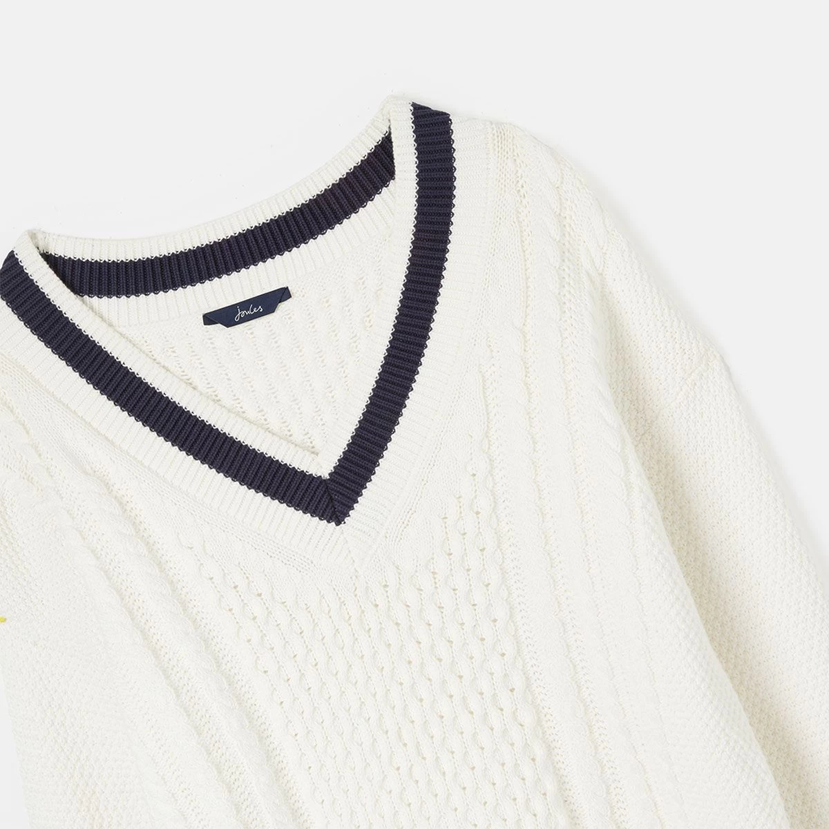 Add a V-neck Cricket- style knit to your wardrobe this season with the Joules Dawson Jumper. A versatile piece with a striped navy collar and cuff detailing that will pair beautifully with a vast array of outfits for every occasion. The low-cut v-neckline also allows for added layering with your favourite Joules shirt or blouse on those chilly days or thrown on top of a summer dress for cooler evening events.