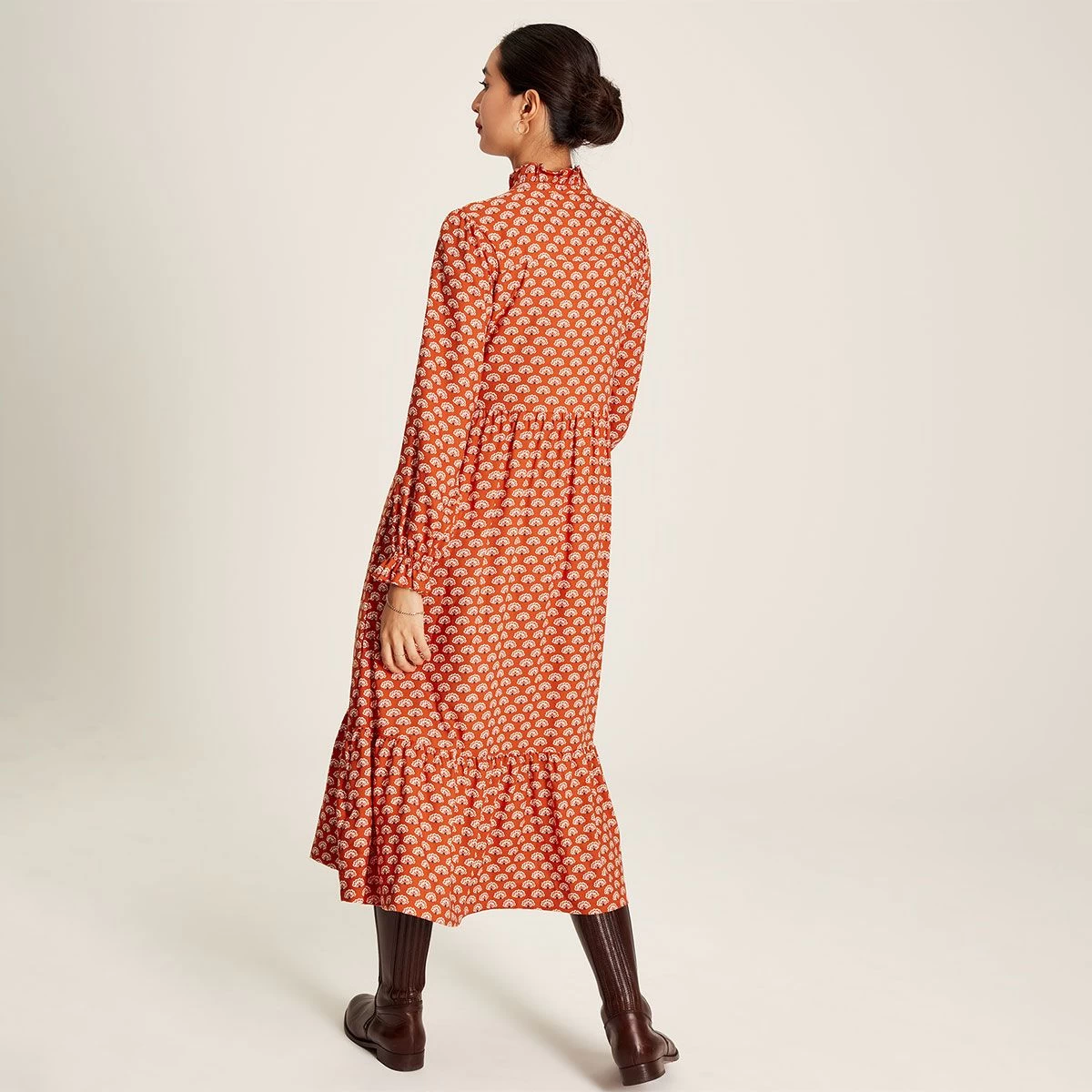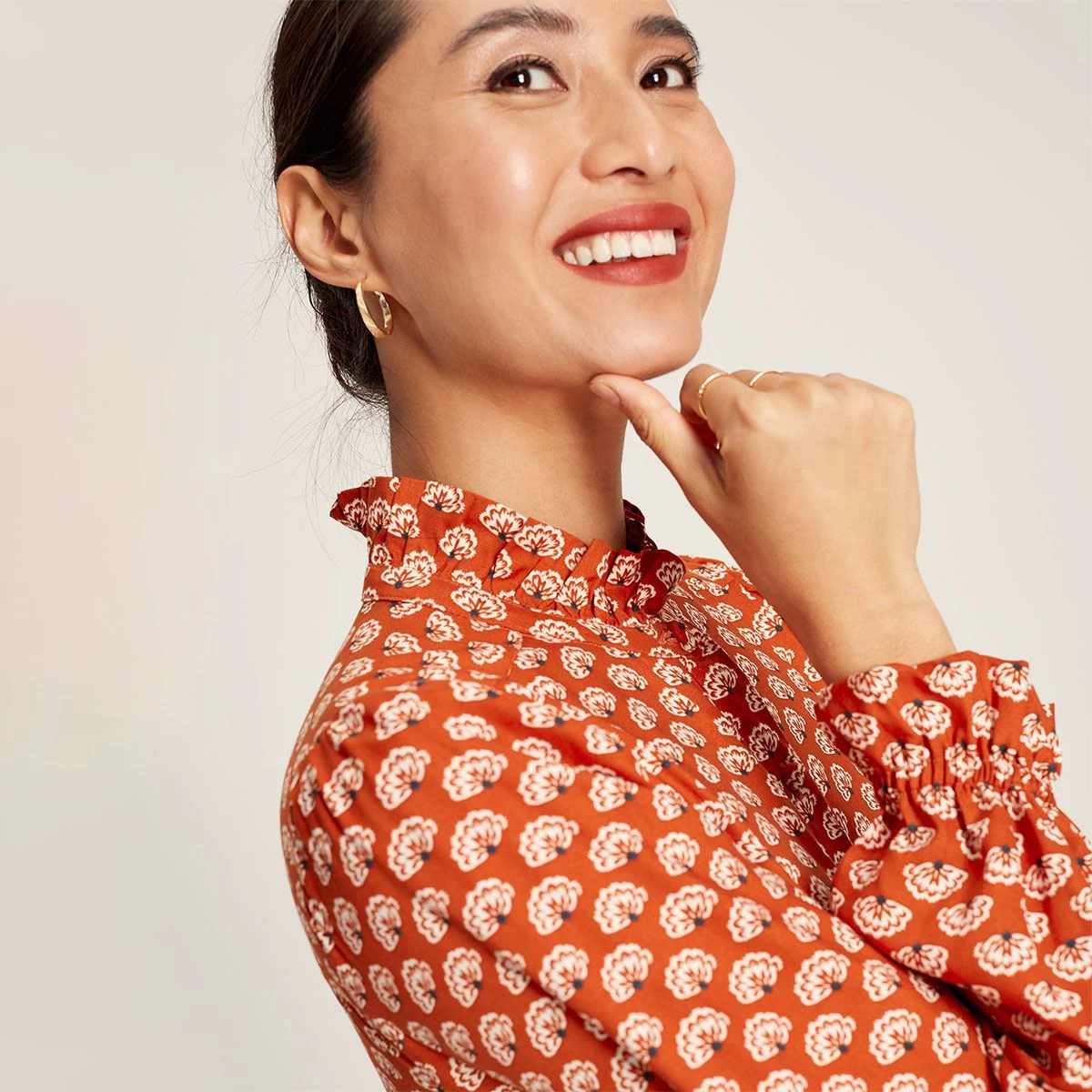 Bring a bright and beautiful splash of colour to your wardrobe this season with the Joules Women’s Josie Dress in the lovingly hand-painted yellow peacock print. This woven dress with neck and waist frill detailing is a versatile piece that can be used throughout the year, whatever the weather, season or climate, making the perfect layering dress with your favourite Joules knitted jumper or as a standout solo piece on those warmer sunny days. The ruffled high neck is replicated with pleats at the sleeve, including elasticated detailing, and at the shoulders to create a classic and elegant silhouette.
