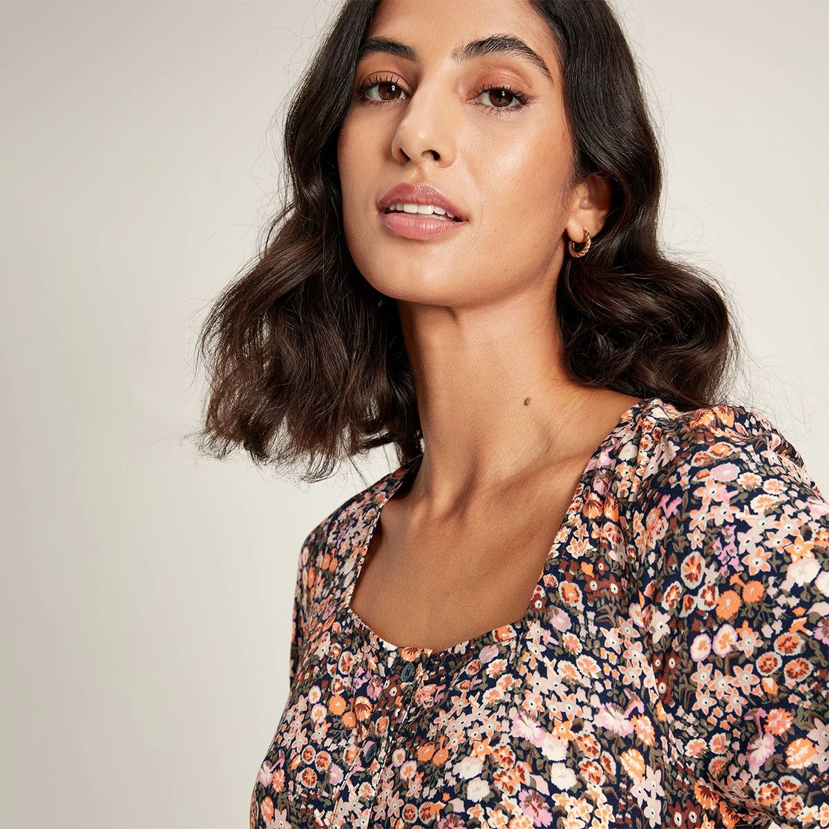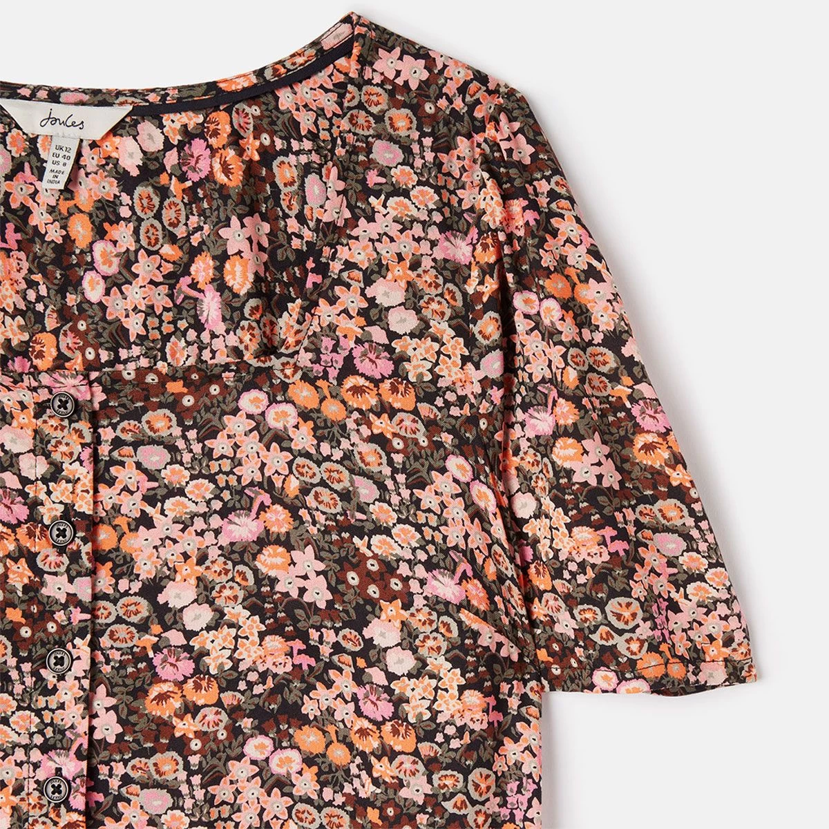 Add a bright and beautiful pop of colour to your wardrobe this season with the Joules Women’s Norah Dress in the charming multi ditsy print with a square neckline and front button panel detailing. This vintage- inspired dress is a styling staple and the perfect transitional dress between the seasons with versatile outfit options when layered with a fluffy knit or worn solo with your favourite sandals. The design details include a knee length cut, short sleeves with material pleats at the shoulders and practical pockets in the side seams so you can dress in style and comfort every day of the week, month and year. The skirt panelling of this dress is designed to fit and flatter with gathered material at the waistline to create a subtle volume.