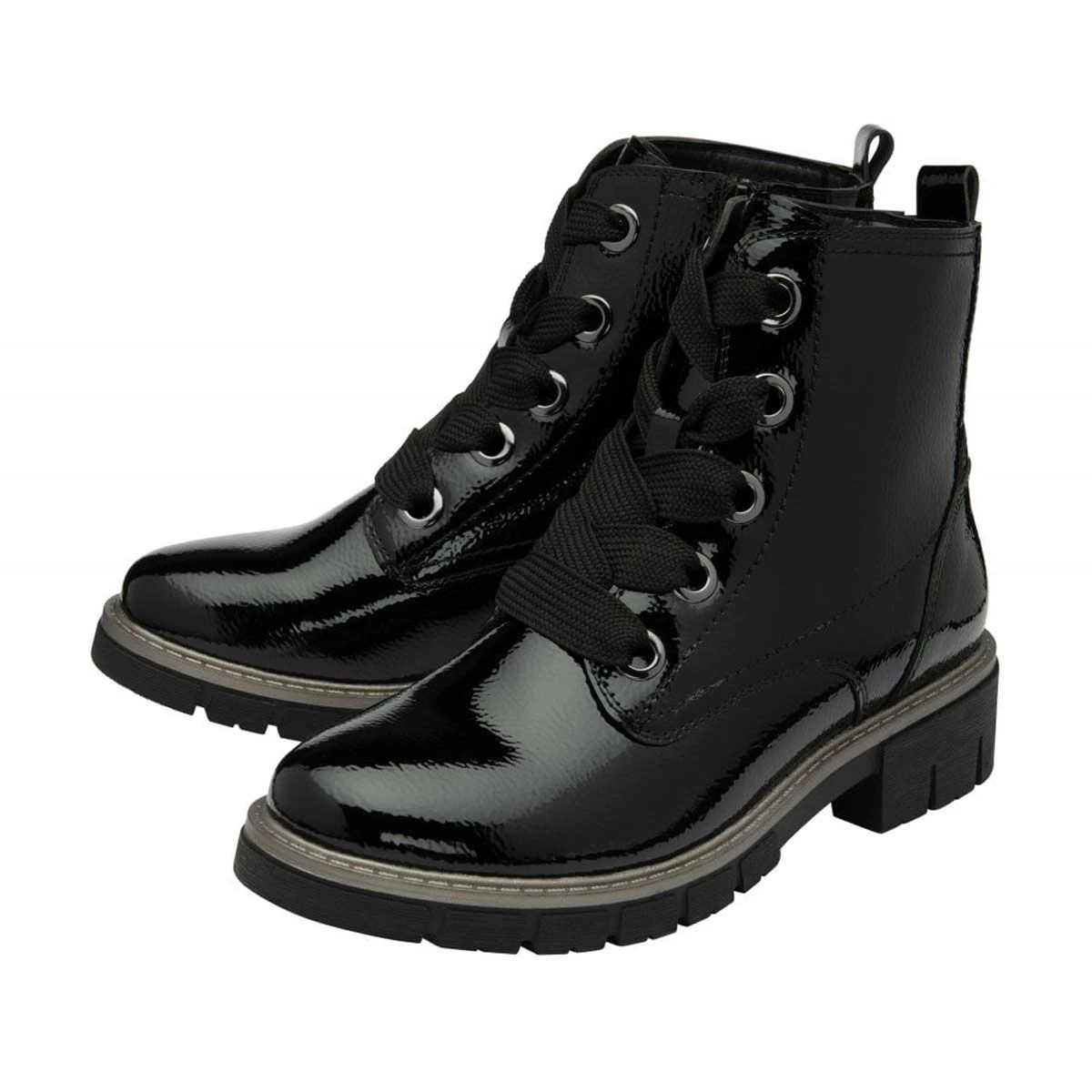 The Jojo Patent Boots by Lotus are a perfect blend of style and comfort, add them to your winter wardrobe for the ultimate statement piece. In a high shine patent upper, chunky laces, and a heavy cleated sole these stylish boots are sure to be a favourite and easy to style with any outfit. This on-trend design is sure to be a winter wardrobe favourite whilst being a practical and sturdy boot for the winter months ahead. In a gorgeous black patent colour, they are perfect for everyday wear.