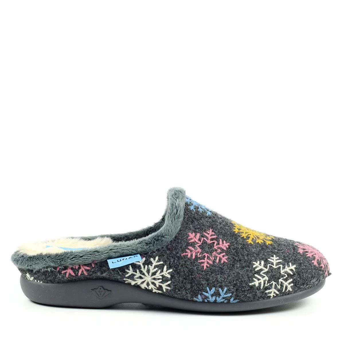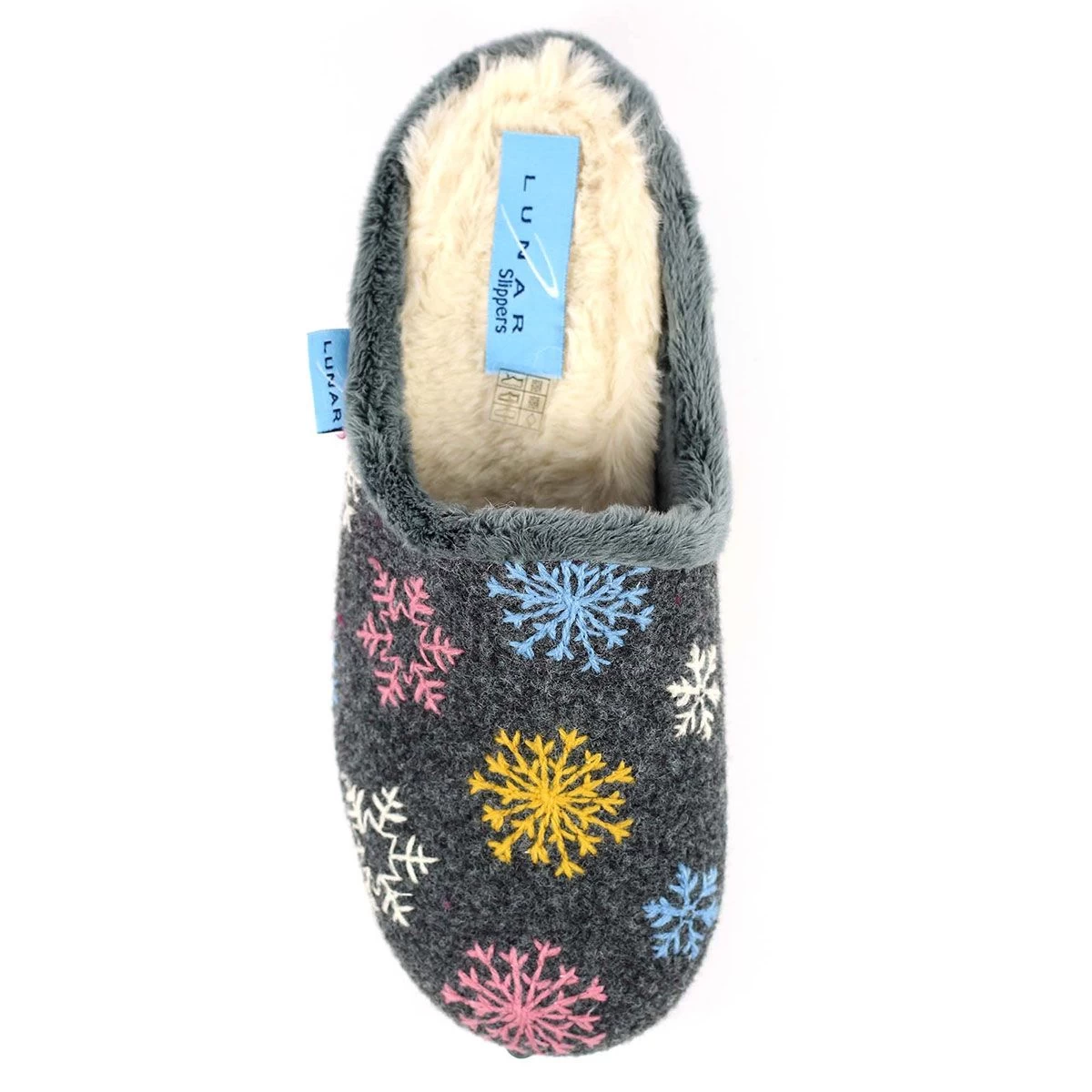 The upper of these mule slippers features a delightful knitted printed textile that showcases an enchanting multicoloured snowflake print. This intricate design adds a touch of elegance and femininity to your loungewear, making your feet feel pampered and cherished. Step inside, and you’ll experience the luxurious softness of the fleece lining. The lining ensures your feet are enveloped in a cloud of warmth, providing an indulgent feeling with every step you take. Say goodbye to chilly toes and embrace the snug embrace of these fleece-lined slippers. Comfort is key, and these mule slippers deliver just that with their synthetic sole and padded insole. The synthetic sole offers a practical grip for indoor wear, allowing you to move around with ease and stability. Additionally, the padded insole provides extra cushioning, making these slippers a dream to wear for extended periods.