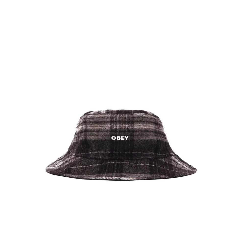 This reversible bucket hat from Obey is made from nylon and plaid and is an unstructured flat top fit. It also features embroidery on the front.