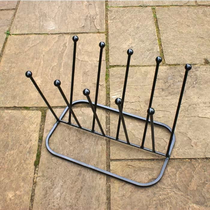 Place this Five Pair Boot Rack in your porch or garden for a stylish way to store your wellingtons. Made from Steel this Boot Rack is durable and practical, and with an antique black finish it will also look great when empty.
