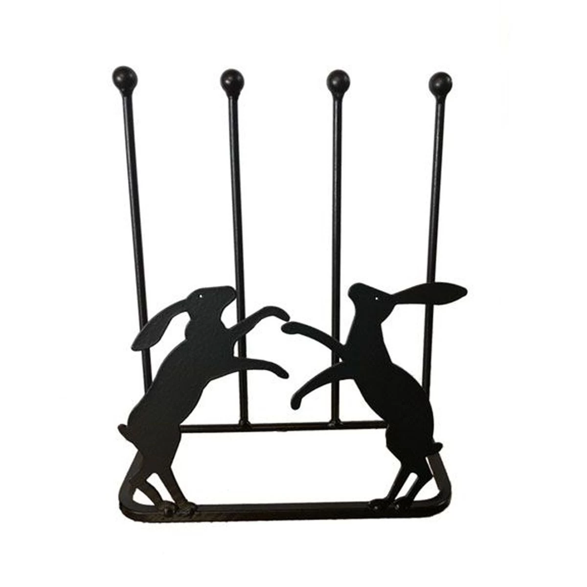 Featuring a charming design of two woodland hares, this Poppy Forge Boot Rack is perfect for keeping outside your door or on your porch ready to hang your boots or wellies. It has a durable all-steel construction and is coated with durable antique black paint. It can hold up to two pairs of boots at once which means no muddy footprints get left behind.