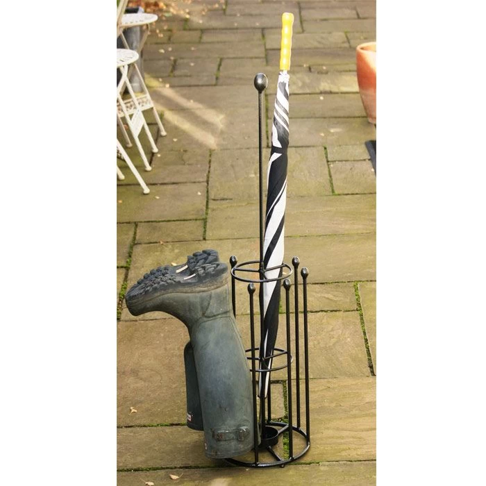 The Poppy Forge Umbrella and Boot Stand is a British crafted stand designed to store away your boots, umbrellas and walking sticks when not in use. This hand made boot rack has been constructed from solid steel and coated in a durable black antique polyester paint, creating a stylish feature that takes up minimal space.