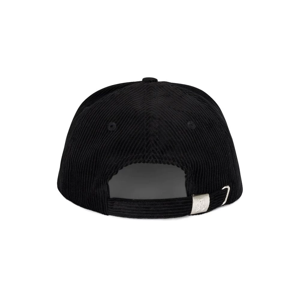 Corduroy, adjustable, 6 panel cap with strapback enclosure and embroidered graphic on the front.