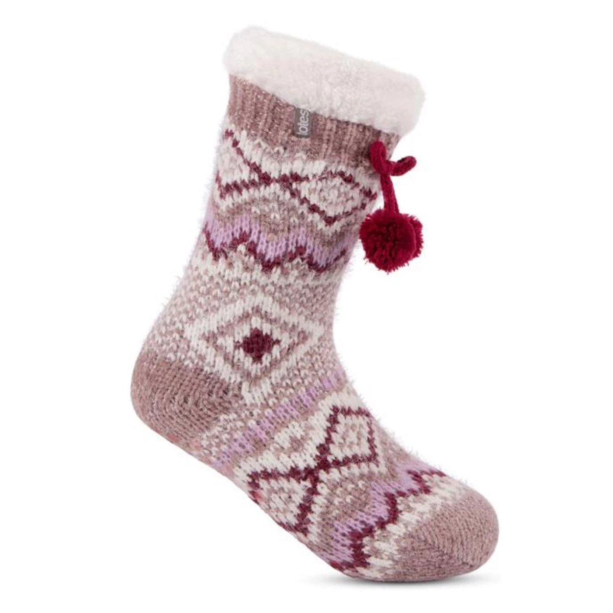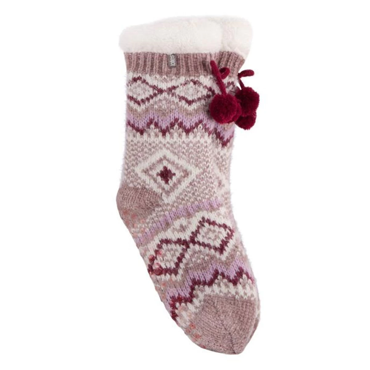 Totes Women’s Chenille Fairisle Slipper Socks – Berry