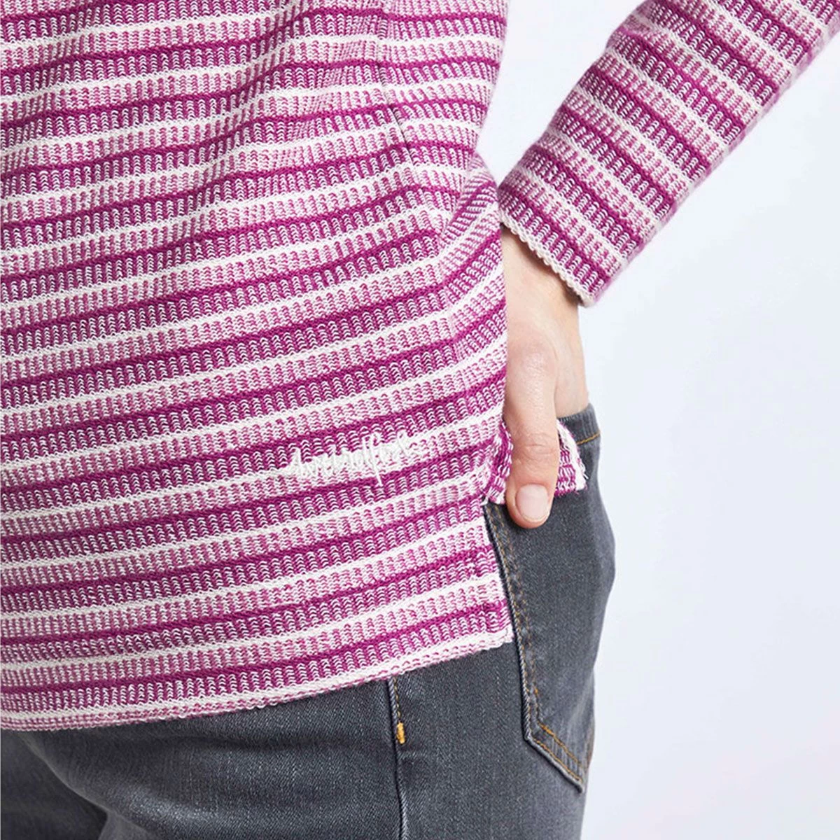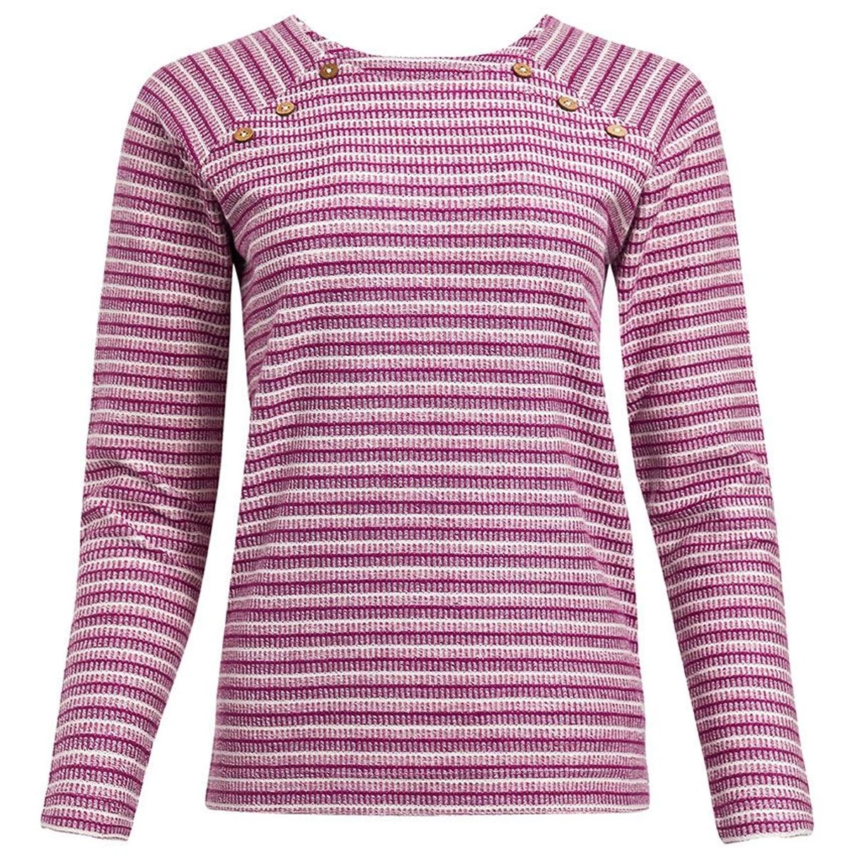 Boasting a berry striped design with the added button details to the shoulders, the Aduja will pair perfectly with your favourite pair of jeans and some chunky trainers for the ultimate relaxed fit.