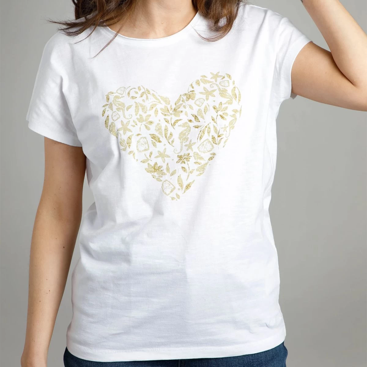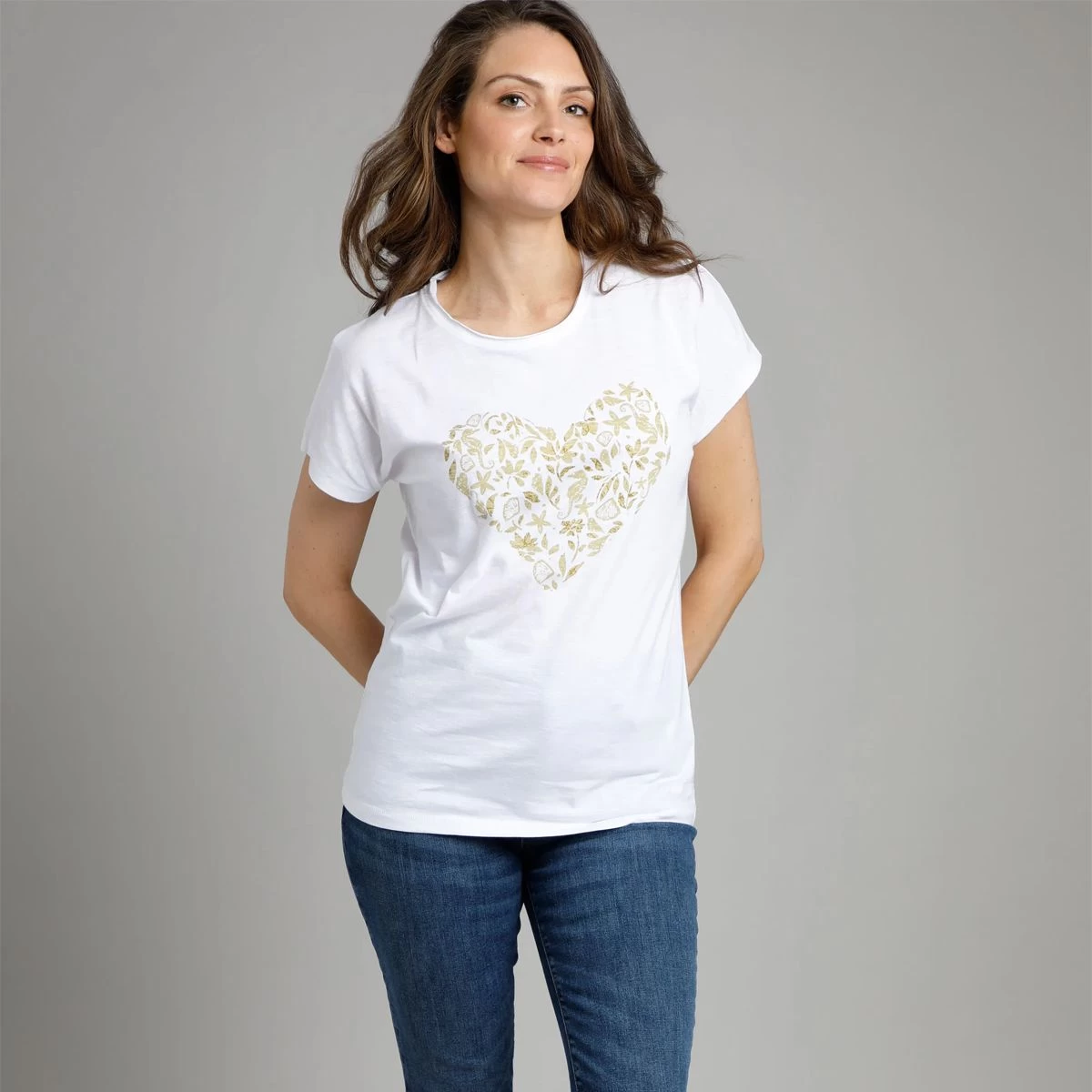If you’re thinking about updating your wardrobe this season, then the Liliana is the perfect addition. Its organic cotton construction and relaxed fit make it super comfortable to wear whatever the weather. With a seaside inspired print in a beautiful hjeart sghape, why not pair it with your favourite shorts for cropped trousers for a laid back look.
