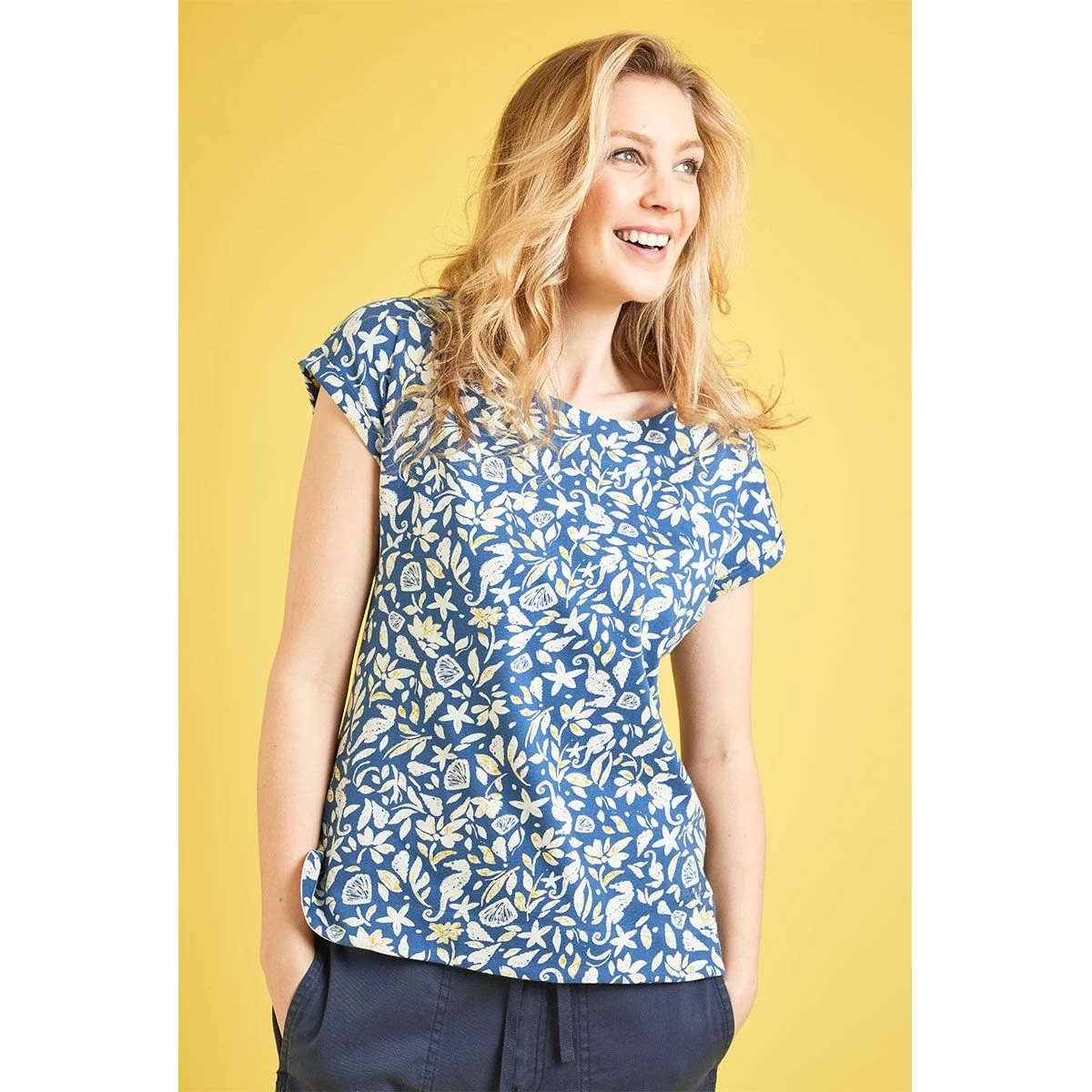 Weird Fish Women’s Paw Paw Printed Organic Cotton T-Shirt – Ensign Blue