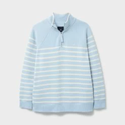 Crew Clothing Women’s Half Zip Striped Sweatshirt – Light Blue/White Smoke