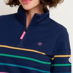 Brakeburn Women’s 1/4 Zip Yarn Dyed Stripe Sweatshirt – Navy